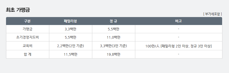 운영 중입니다.(정보공개서 기준)