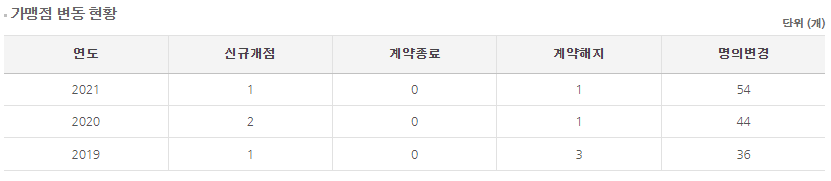신규개점은 1년에 1~2건, 명의변경은 3~50건이었네요.