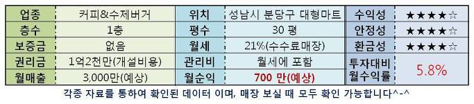 [분당/커피] 분당 대형 마트내 커피&수제버거 신규입점건