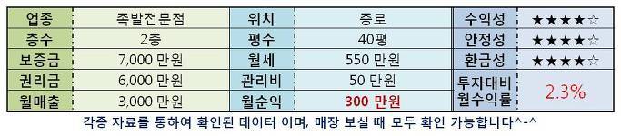 다른업종으로 창업하시기 위해 인수를 하셔도 좋고 현재 업종으로 인수를 하셔서 몇가지 보완하시어 운영하시기에 정말 좋은 매장이라 생각됩니다.