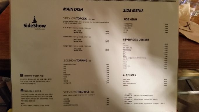 지난 주말 요즘 홍대에서 한창 핫하다는 즉석떡볶이 맛집 '사이드쇼'에 다녀왔습니다.