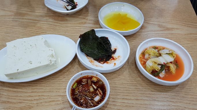 기본 상차림에 두부 모습입니다.