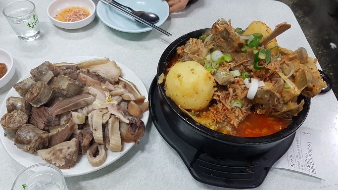 저와 일행은 감자국 '소'와 접시순대(머릿고기 섞어서)를 주문했습니다.
