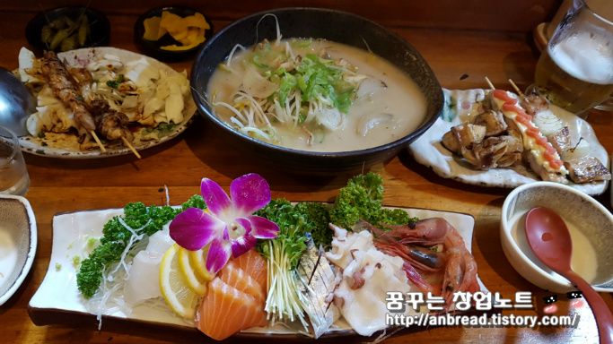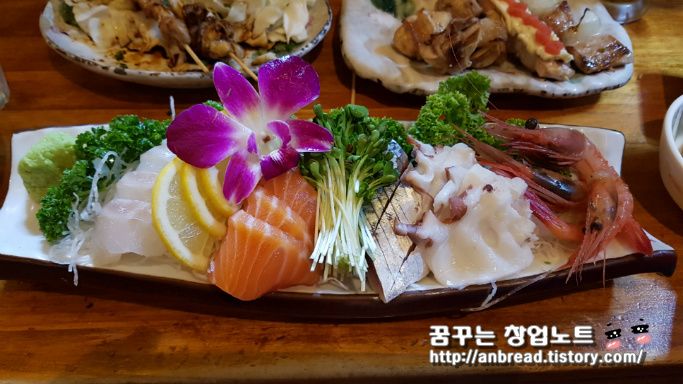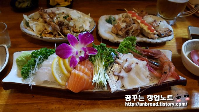 저와 일행은 세트 메뉴를 주문했습니다. 꼬치구이 5개와 사시미, 그리고 나가사키짬뽕이 나오는 세트메뉴입니다. 가격은 6만원 중후반대.