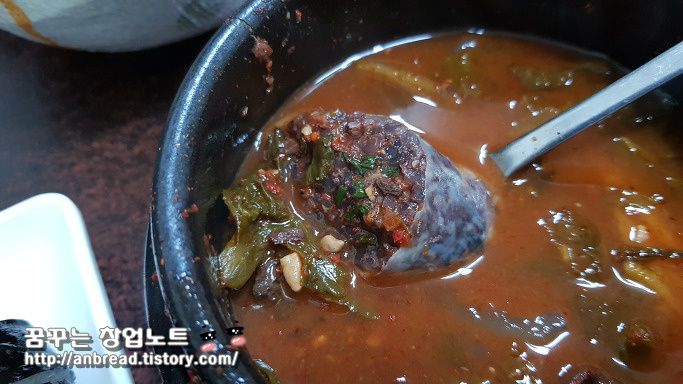 서비스로 나온 해장국에 순대를 넣어서도 먹어보고..