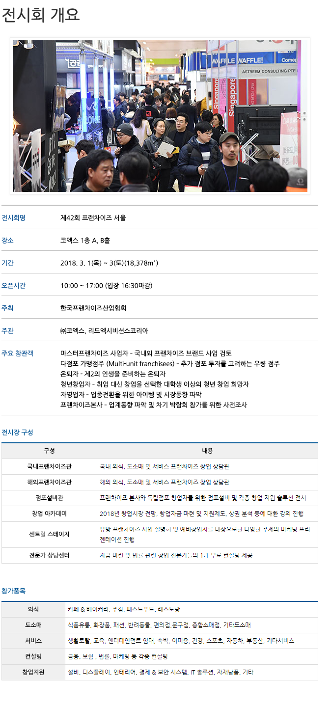 제 42회 2018 프랜차이즈 서울 사전등록 안내