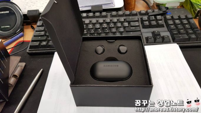 검은 박스 안에는 각각 S,L 사이즈의 이어팁과 윙팁이 들어있다. 최초 이어버드에 끼워져있는 이어팁과 윙팁의 사이즈는 M 이다. 그리고 USB-C 타입 케이블이 들어있고 micro 5핀, USB-C 타입 젠더가 한개씩 들어있다. 이건 갤럭시 노트8을 샀을때도 들어있어서 남아도는 상황.