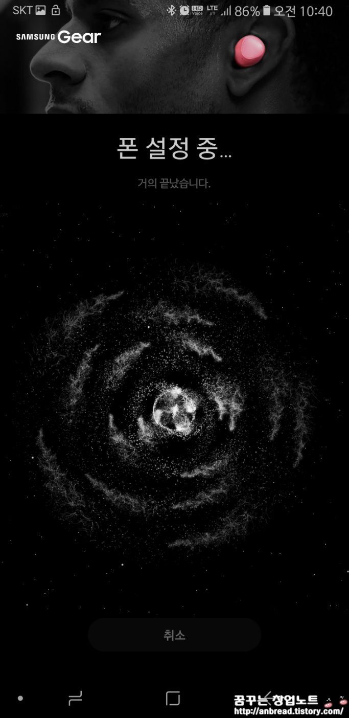 충전케이스에 이어버드를 넣고 충전을 하다가 뚜껑을 열어보니 휴대폰에 자동으로 이런 화면이 뜬다. 연결.