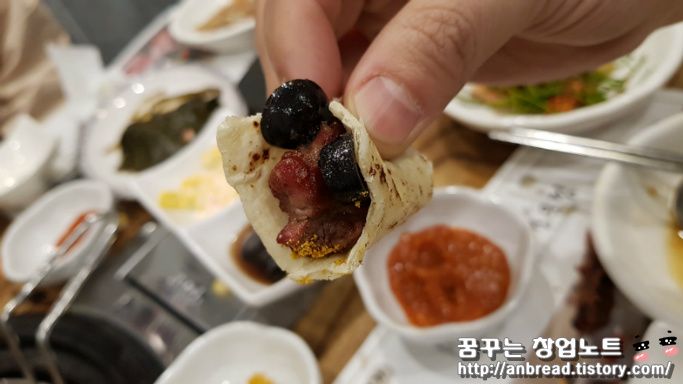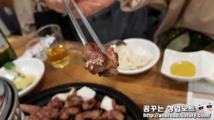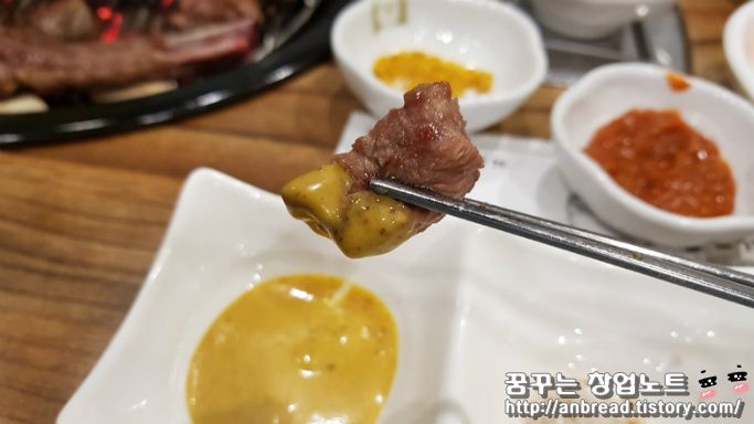 첫입은 소금만 살짝 찍어서 한입!! 아... 양 특유의 향이 은은히 나며 육즙이 입안 가득 퍼지네요.. 굿!!!