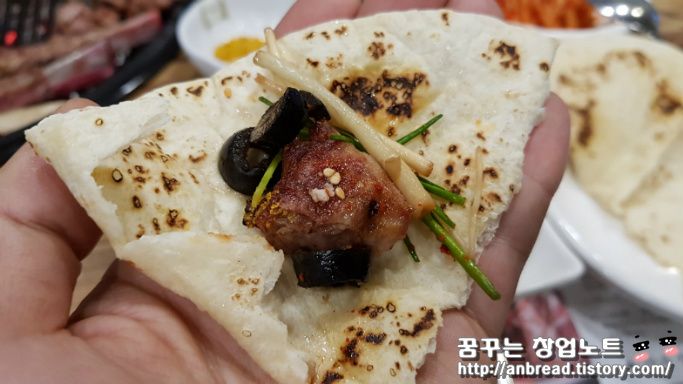 고기가 다 익을때쯤 구운 난을 주십니다.