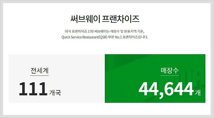 서브웨이는 전세계인이 사랑하는 샌드위치 프랜차이즈로 전세계 111개국에 44,644개의 매장이 운영중이라고 합니다. 이는 맥도날드보다 많은 수 입니다.