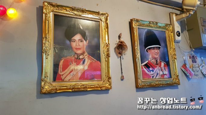 가게 안은 이렇게 태국 분위기. 작년에 돌아가신 태국 국왕의 사진이 보이네요. 태국 국민들이 많이 사랑했던 왕입니다.
