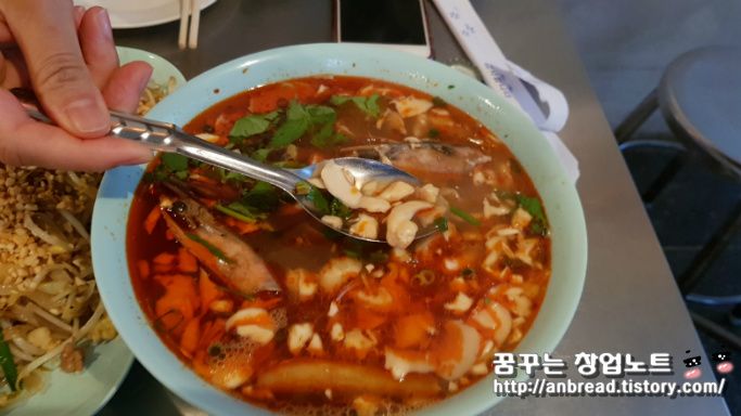 이런 저런 내용물이 실하게 들어가있습니다. 고수는 넣을지 말지 물어봐주시더라구요. 저희는 고수를 듬뿍 넣었습니다.