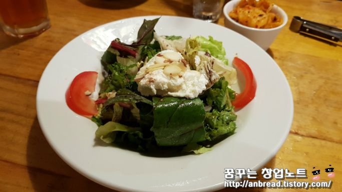 이건 기본안주로 나오는 샐러드입니다. 리코타 치즈가 얹어져있군요.