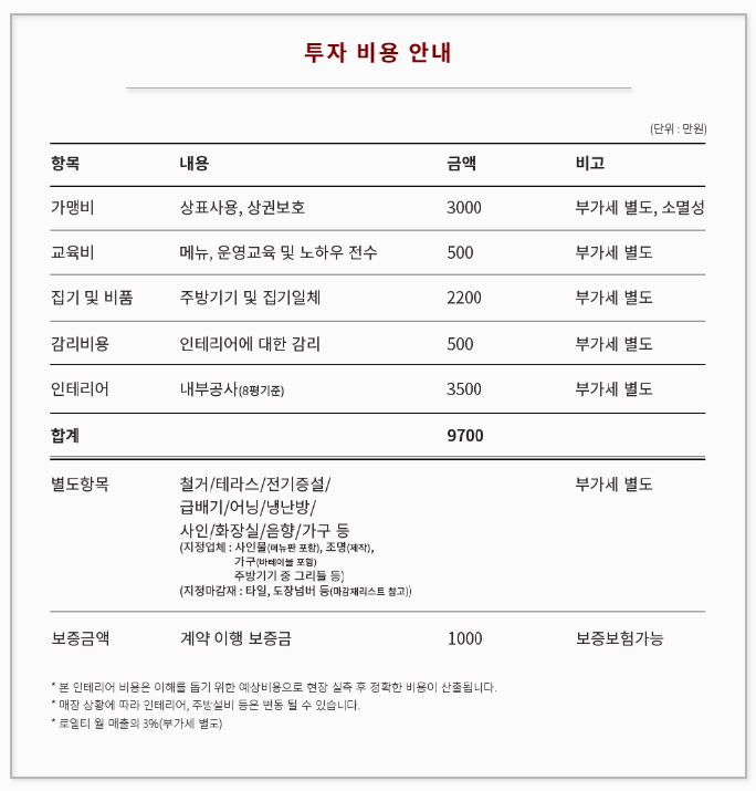 | 투자금액(보증금+권리금) | 20,000 만원 | ||