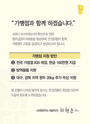 전국 매장에 현금 100만원 지급을 하고